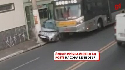 VÍDEO: Por 30 segundos, motorista escapa de ser atingido por ônibus na Zona Leste de SP; carro estacionado ficou destruído
