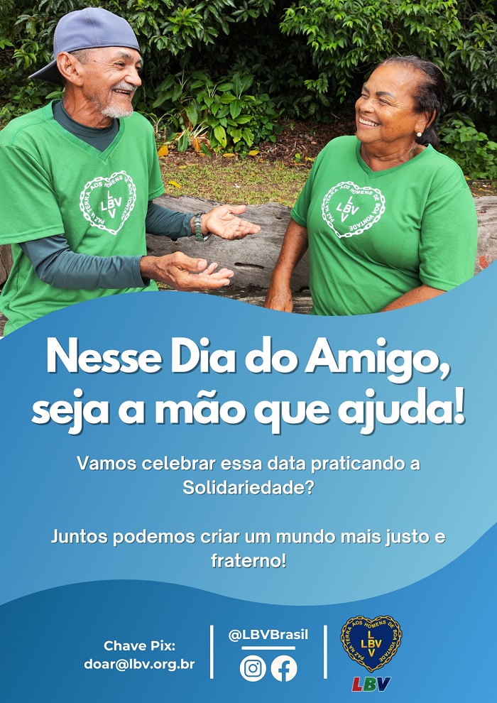A Legião da Boa Vontade (LBV) celebra, todos os anos, o Dia do Amigo, comemorado em 20 de julho. Até o dia 25/07 tem uma programação especial preparada pela Instituição em suas mais de 80 unidades socioeducacionais no país, afinal, a verdadeira amizade se demonstra com gestos de Solidariedade e carinho.