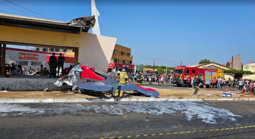 Avião cai, atinge van e moto e deixa duas pessoas gravemente feridas; assista
