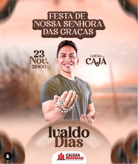 Primeira vez na festa de Nossa Senhora das Graças, no Cajá, show de louvor e adoração com Ivaldo Dias (@ivaldodiasoficial) . O anuncio foi feito pelo perfil oficial da Prefeitura de Caldas Brandão.