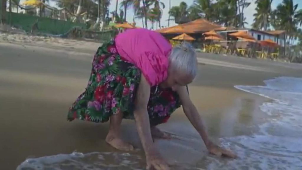 Emocionante: idosa vai à praia pela primeira vez aos 92 anos na Bahia