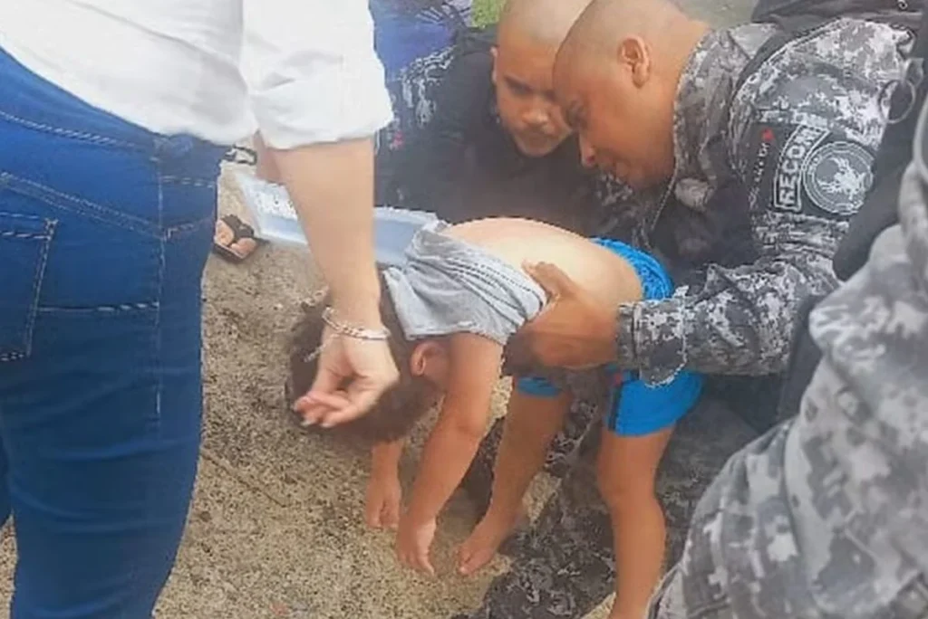 Mãe desesperada corre com filho de 2 anos engasgado com pipoca na Avenida Brasil; PMs prestam socorro imediato