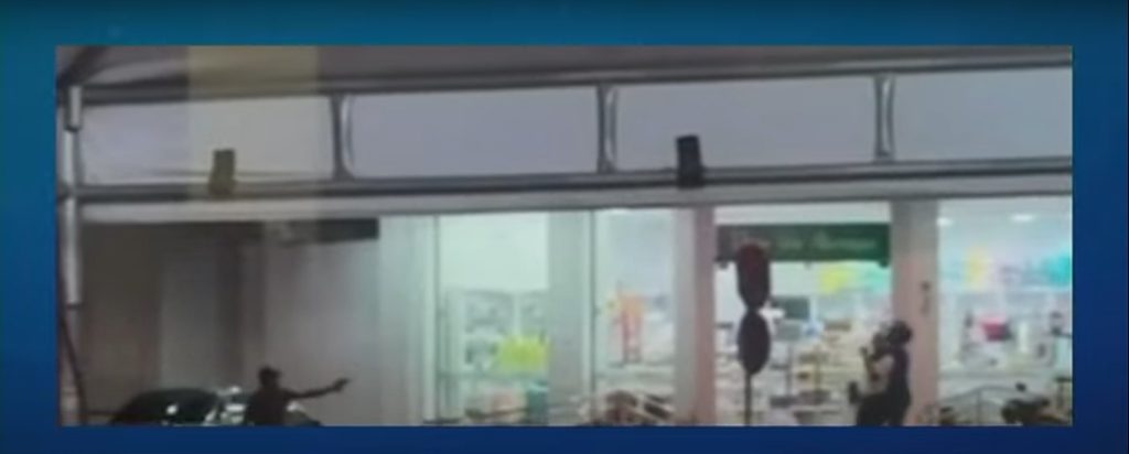 Criminosos assaltam farmácia, trocam tiros com segurança e fazem clientes refém, na Capital