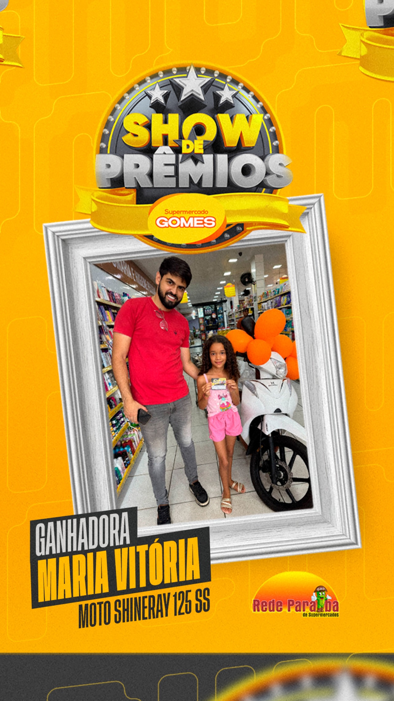 Além disso, o Supermercado Gomes Rede Paraíba, esteve realizando o sorteio juntamente com os cupons dos clientes da Matriz de Lagoa de Dentro, valendo uma moto 0km Shineray Jet 125, este prêmio foi para a cliente da cidade de Duas Estradas.
