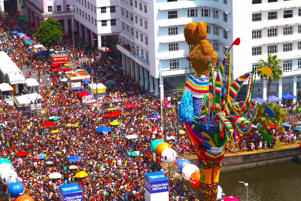 Totalmente aclamada: boneca gigante de Fernanda Torres atrai multidão de fãs em Olinda