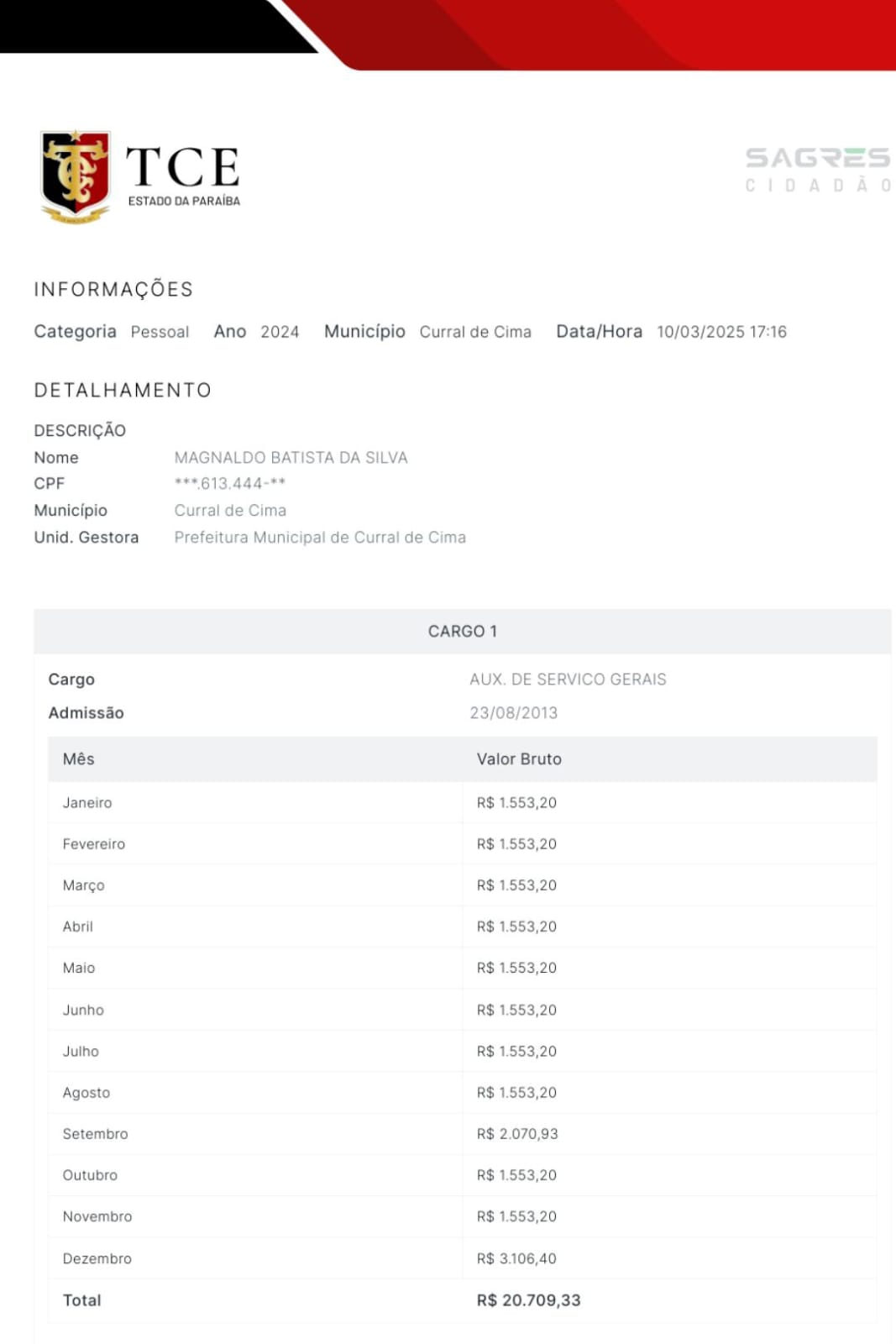 O mesmo citado acima na matéria, é concursado no município como auxiliar de serviços gerais no município, mais vem desempenhando a função de Técnico de Enfermagem por ser aliado do prefeito.