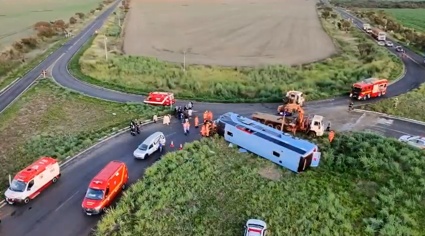 Ônibus tomba com 50 passageiros e deixa pelo menos quatro mortos na MG-223