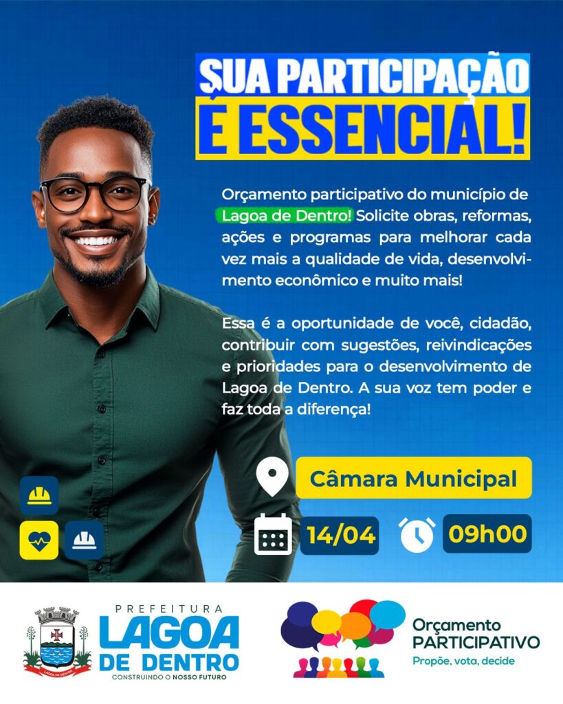 Nesta segunda-feira (14), a prefeitura de Lagoa de Dentro, agreste Paraibano, estará realizando a edição do Orçamento Participativo 2025, um encontro de ideias e debates junto a população. Essa é a oportunidade de você, cidadão, contribuir com sugestões, reivindicações e prioridades para o desenvolvimento de Lagoa de Dentro e de toda a região. A sua […]