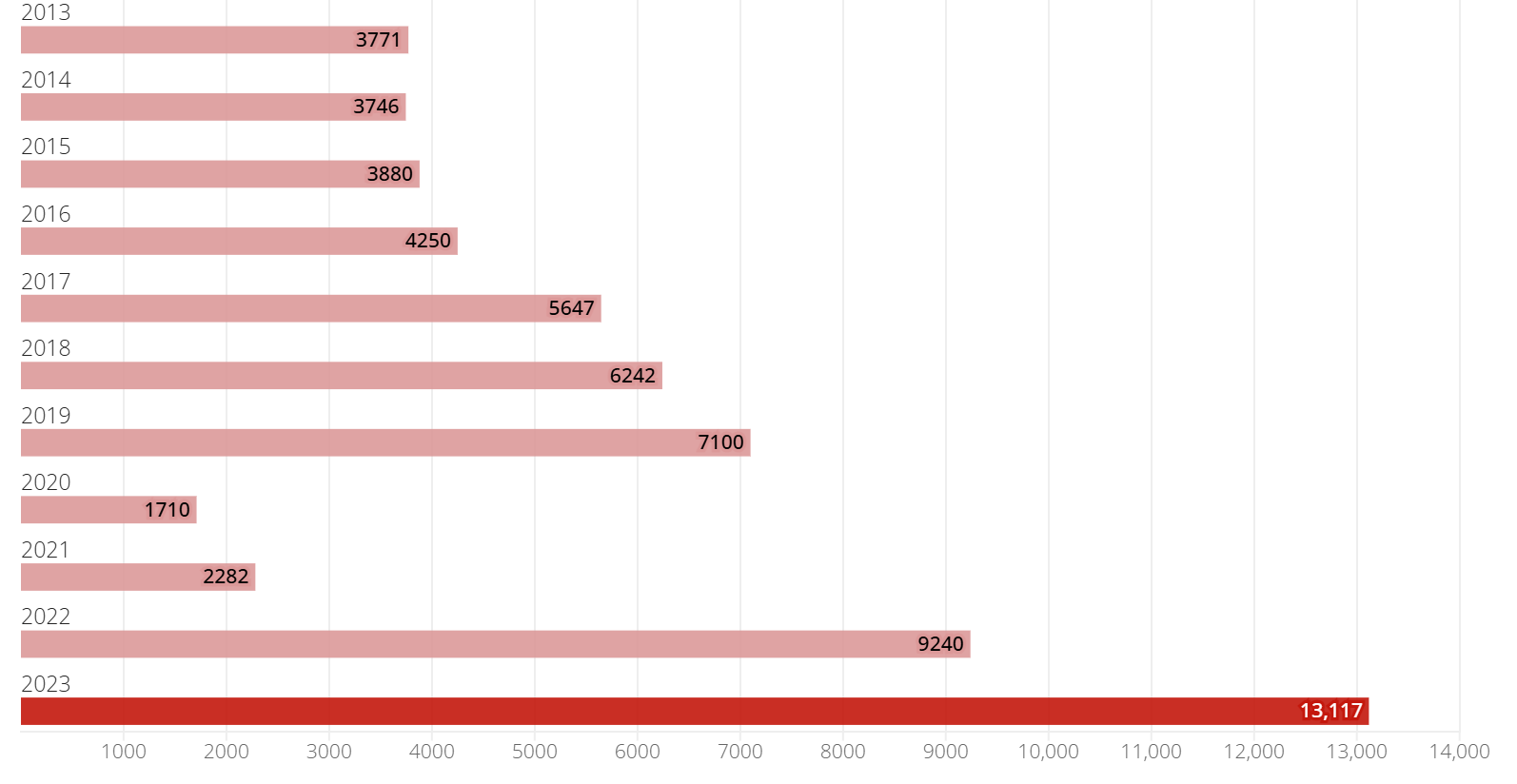 Naquele ano, segundo o Ministério de Direitos Humanos e Cidadania (MDHC), 13,1 mil pacientes foram atendidos em serviços públicos e privados de saúde, após se automutilarem, tentarem suicídio ou sofrerem ataques psicológicos e físicos no contexto educacional. Em 2013, houve 3,7 mil episódios.