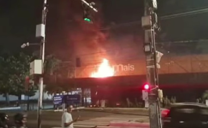 VÍDEO: estrutura em supermercado pega fogo em João Pessoa e assusta populares