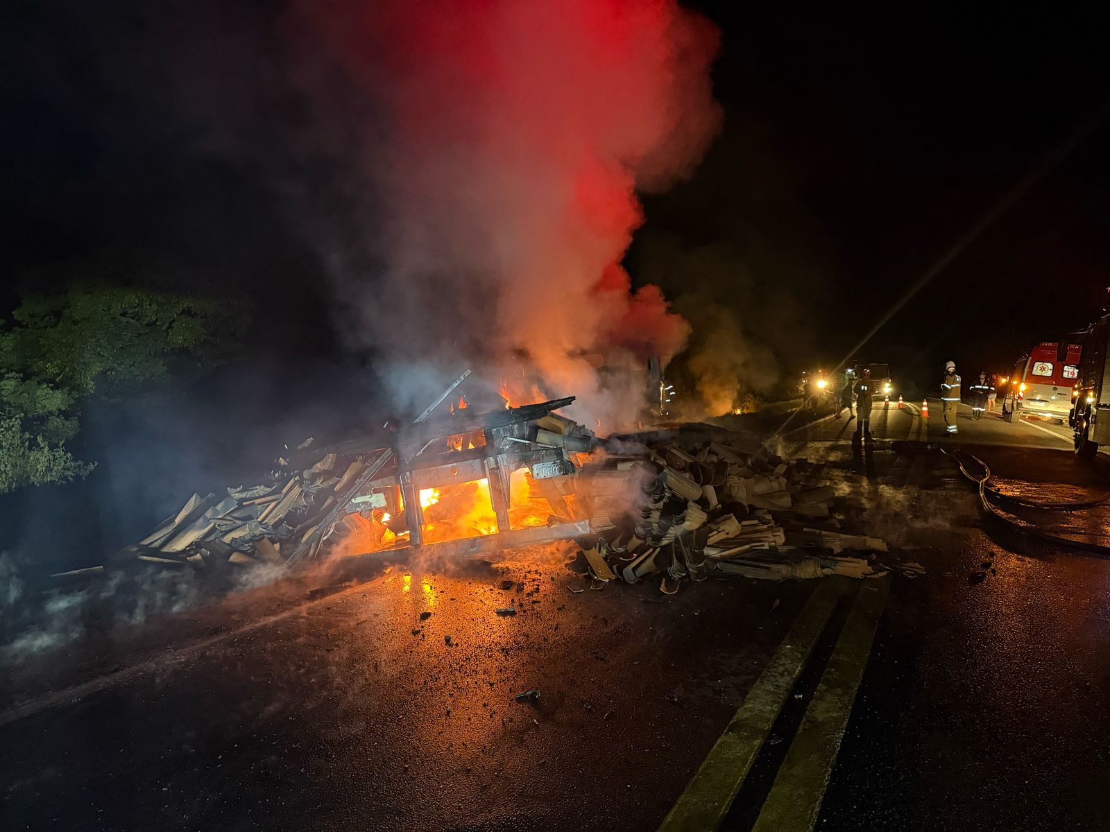Ao chegar ao local, equipes do Corpo de Bombeiros se depararam com um incêndio de grandes proporções. O motorista do caminhão conseguiu sair a tempo, com ferimentos leves, e relatou aos bombeiros que havia abastecido o veículo momentos antes do acidente, o que pode ter contribuído para a intensidade das chamas devido ao tanque cheio de combustível.