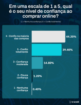 Mas os brasileiros parecem já ter avançado nas estratégias de autoproteção para alguns dos principais golpes digitais, pois 84% dos entrevistados de uma pesquisa desenvolvida pela Branddi, empresa especializada na proteção de marcas, afirmam se sentir confiantes ao comprar online.