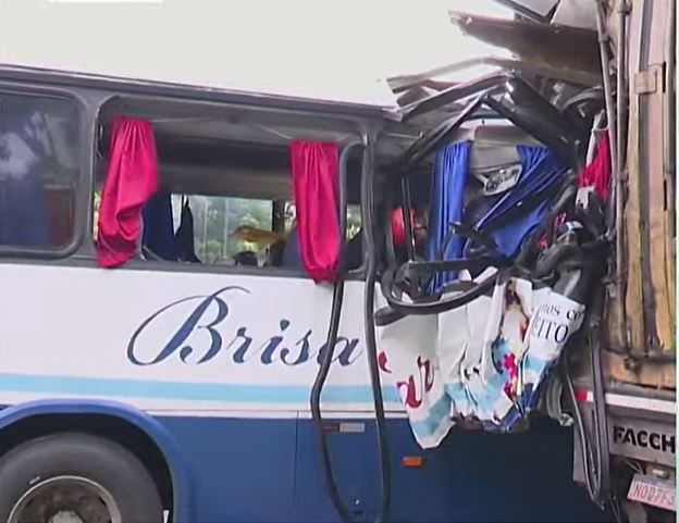 Acidente grave entre ônibus e caminhão deixa uma pessoa morta e outras presas às ferragens na BR-230, em Santa Rita
