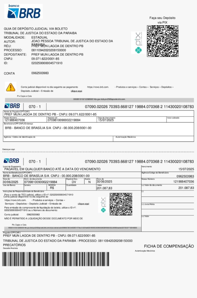 Prefeitura de Lagoa de Dentro paga mais de R$ 200 mil em precatórios deixados por gestões anteriores e lamenta prejuízo aos cofres públicos