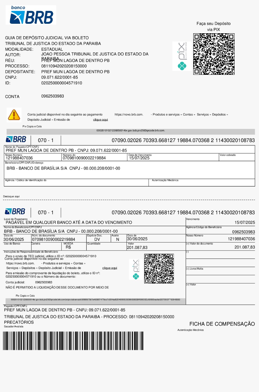 A Prefeitura de Lagoa de Dentro realizou, no mês de junho, mais um pagamento relacionado aos precatórios acumulados de administrações passadas — conhecidos como “herança maldita”. O valor pago ultrapassou os R$ 200 mil reais, montante que poderia ter sido investido em obras, saúde, educação e outros serviços essenciais para os munícipes.