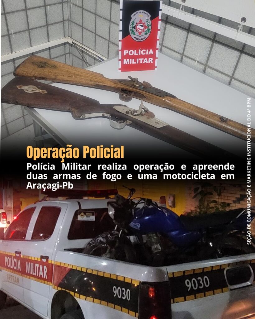 Polícia Militar apreende duas armas de fogo e uma motocicleta em Araçagi