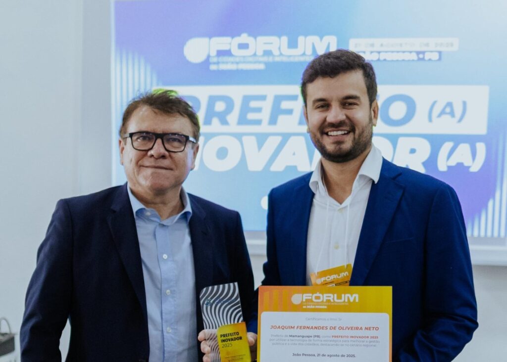 Joaquim Fernandes apresenta case de sucesso do app Mamanguape tá on e recebe prêmio de Prefeito Inovador