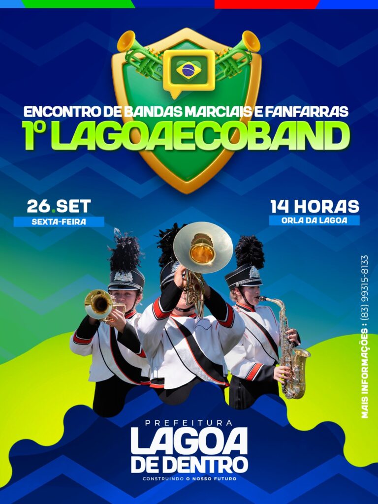 A Prefeitura de Lagoa de Dentro, através da Secretaria Municipal de Educação e Cultura, convida toda a população para participar do 1º Lagoaecoband – Encontro de Bandas Marciais e Fanfarras, que será realizado no próximo dia 26 de setembro, a partir das 14h, na Orla da Lagoa. O evento promete ser um grande espetáculo de música, disciplina […]