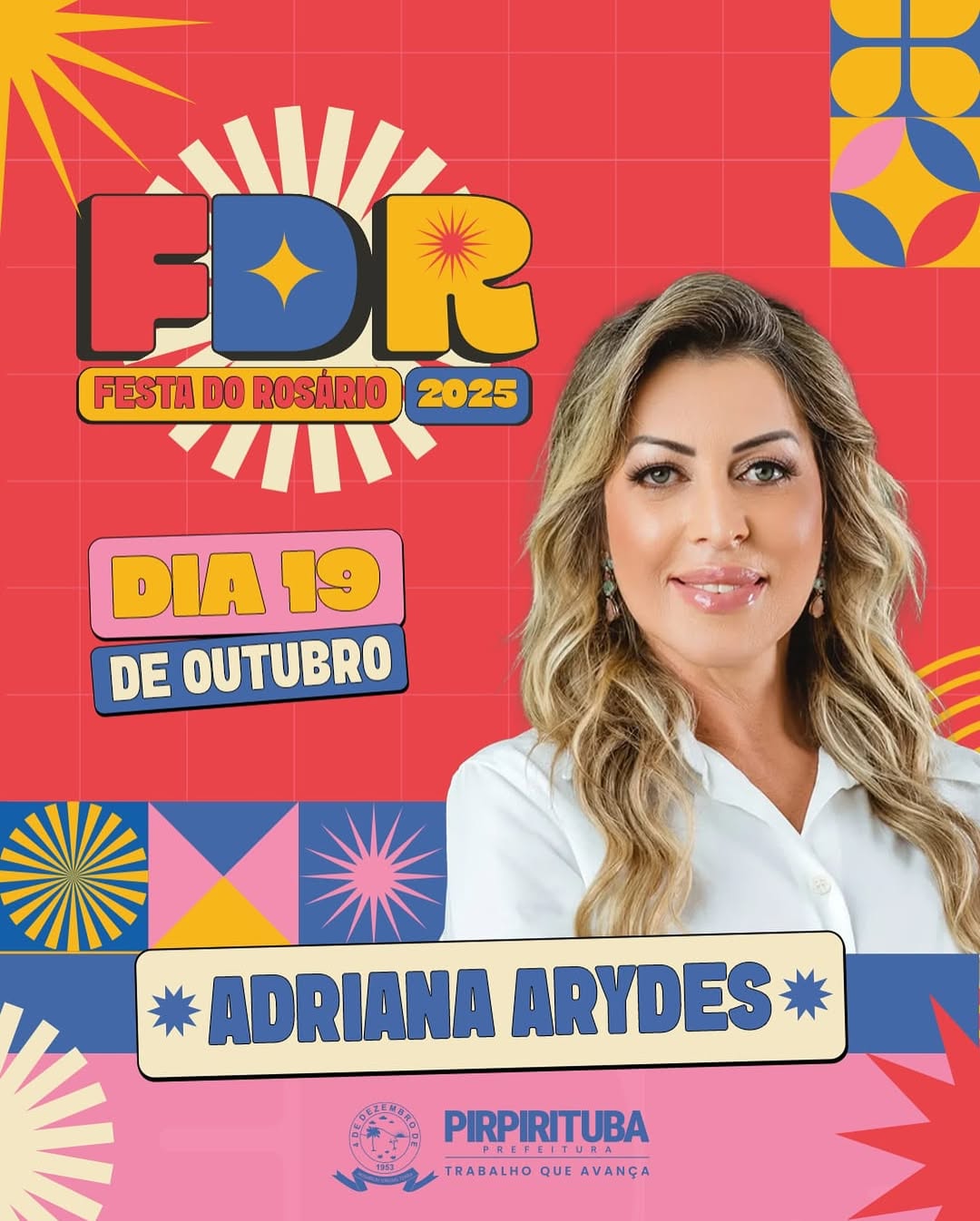 “Começamos com uma grande notícia. Trazer Adriana Arydes para Pirpirituba é um presente para os devotos e para toda a população que vive intensamente essa festa. Será uma noite inesquecível de louvor e fé”, destacou o prefeito Danilo Rocha. A Festa do Rosário é um marco na agenda cultural do município, reunindo moradores, turistas, comunidades vizinhas e devotos em dias de celebração, novenas, apresentações culturais e shows musicais.