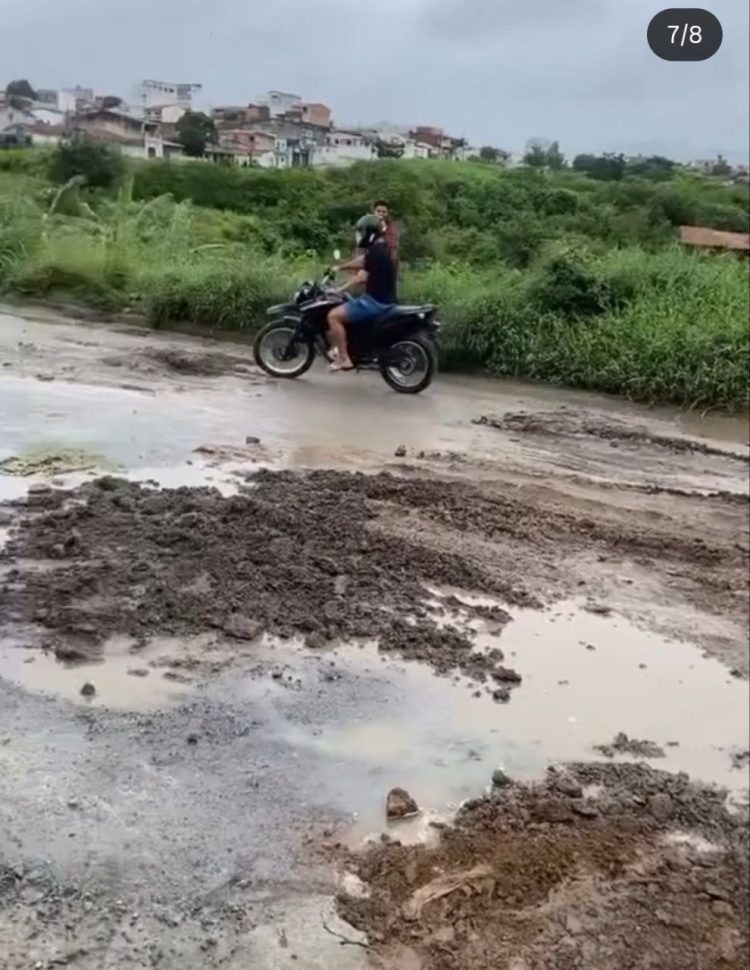 Moradores se reúnem e tapam com barro buracos de rodovia estadual, em Guarabira