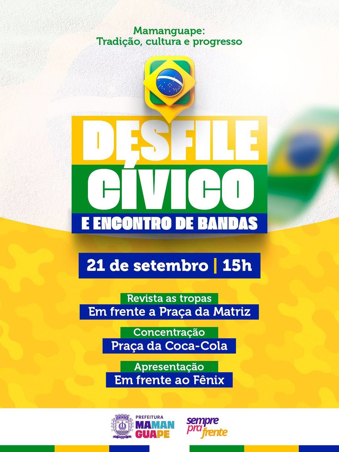 Mamanguape se prepara para viver, neste domingo (21), mais um momento de celebração da tradição. O Desfile Cívico, realizado pela Prefeitura de Mamanguape, terá início às 15h, em frente ao Centro Cultural Fênix, reunindo instituições, secretarias municipais e diversas bandas marciais em um grande Encontro de Bandas.