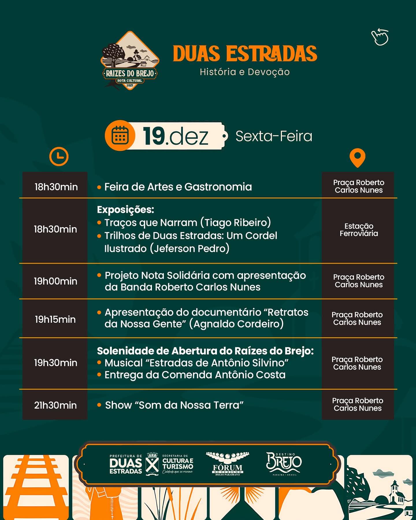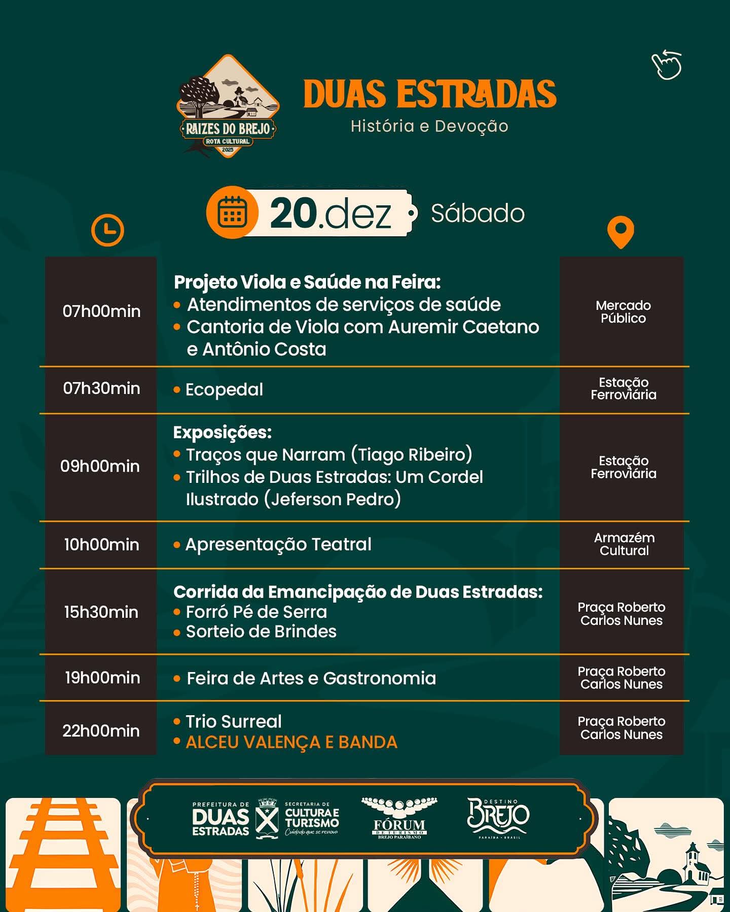 Destaque no mapa do turismo brasileiro, a cidade de Duas Estradas realiza mais uma edição do Raízes do Brejo, o ícone da Música Popular Brasileira, Alceu Valença, será a principal atração musical da programação e sem dúvida será mais que um show, vai ser um acontecimento inesquecível para marcar nossa memória e nossa história.