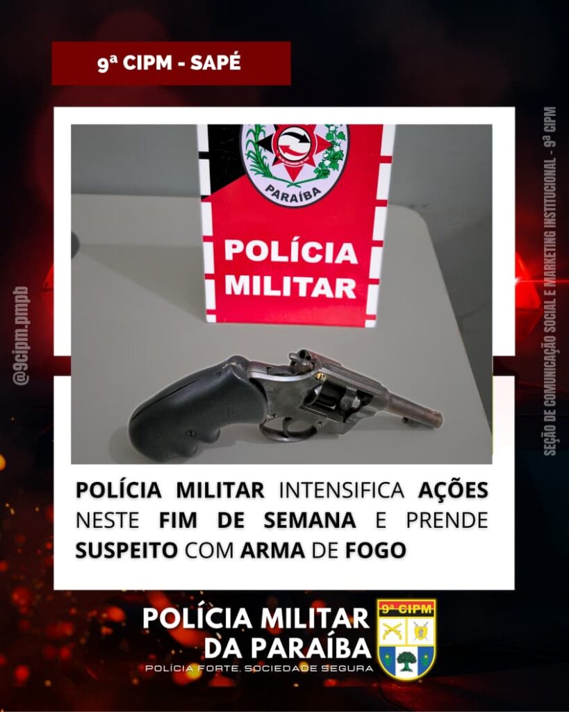 POLÍCIA MILITAR INTENSIFICA AÇÕES NESTE FIM DE SEMANA E PRENDE SUSPEITO COM ARMA DE FOGO EM SAPÉ