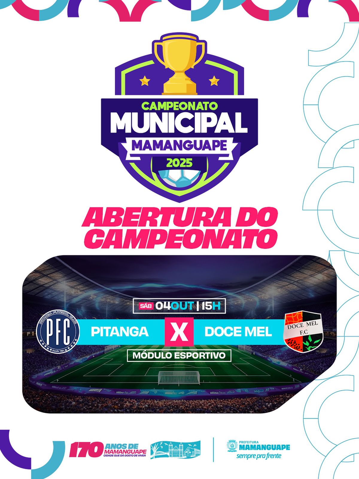 A Prefeitura de Mamanguape dará início, neste sábado (04), ao 1º Campeonato Municipal de Futebol de Campo, um evento inédito que promete movimentar o cenário esportivo da cidade. A partida de abertura será realizada no Módulo Esportivo, às 15h, entre as equipes Pitanga e Doce Mel.