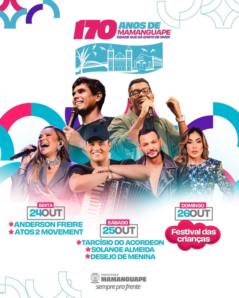 As comemorações pelos 170 anos de emancipação política de Mamanguape prometem movimentar o município neste fim de semana com uma programação recheada de atrações culturais, religiosas e recreativas para toda a família. Os eventos serão realizados nos dias 24, 25 e 26 de outubro. Confira a programação completa: 24 de outubro (sexta-feira) A abertura da festa […]