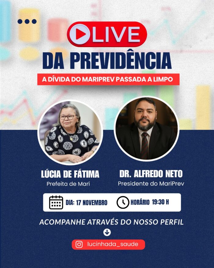 A transmissão contará com a presença da própria prefeita e também do presidente do MaríPrev, Dr. Alfredo Neto. A expectativa é que, juntos, eles apresentem dados reais e detalhados sobre a dívida total acumulada, expliquem como ela se formou ao longo dos anos e esclareçam o impacto dessa situação na vida dos servidores, aposentados, pensionistas e ativos.