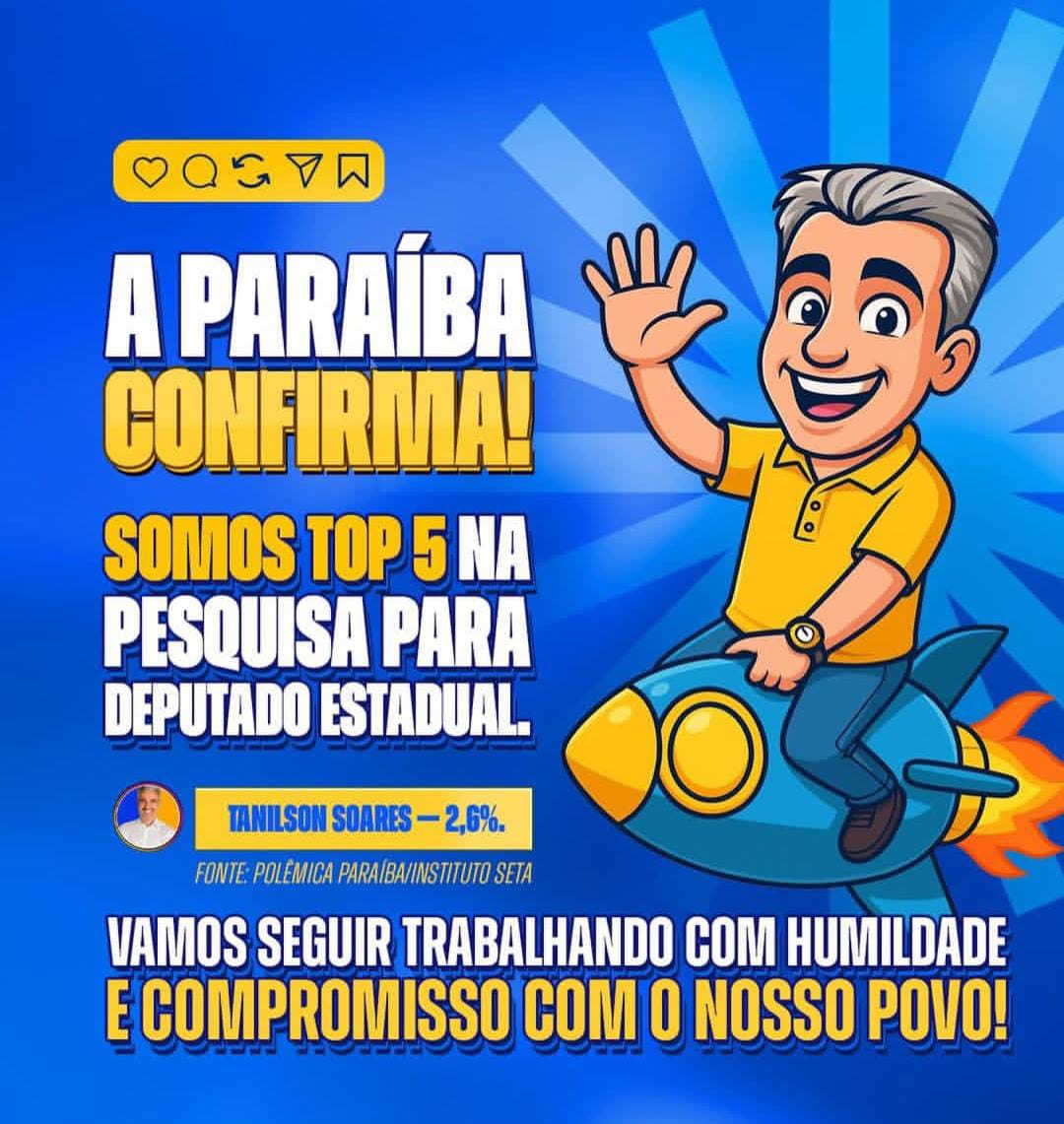 Ao comentar o desempenho, Tanilson agradeceu o reconhecimento e destacou que o resultado reforça o compromisso de seguir trabalhando de forma responsável e transparente. “Agradeço profundamente ao reconhecimento do povo paraibano, mas reforço que nosso foco e prioridade continuam os mesmos, trabalhar com compromisso, responsabilidade e transparência”, afirmou.