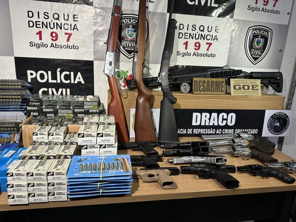 Durante a operação, foram encontradas armas de vários tipos, além de celulares, documentos e outros materiais que devem ajudar a explicar como o esquema funcionava, conforme apurou o Notícia Paraíba.