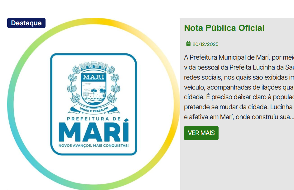 Por fim, a Prefeitura de Marí conclama a sociedade mariense, lideranças políticas, a imprensa e formadores de opinião a priorizarem o debate sério sobre políticas públicas, o desenvolvimento do município e o bem-estar da população, em vez de ataques pessoais que nada acrescentam à construção de uma cidade mais justa e democrática.