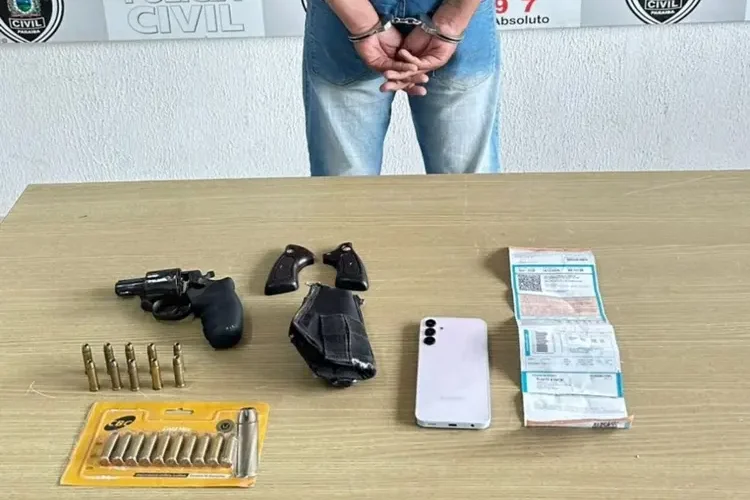 Durante a ação, os policiais apreenderam um revólver calibre .38 com numeração suprimida, além de 20 munições, configurando posse irregular de arma de fogo.