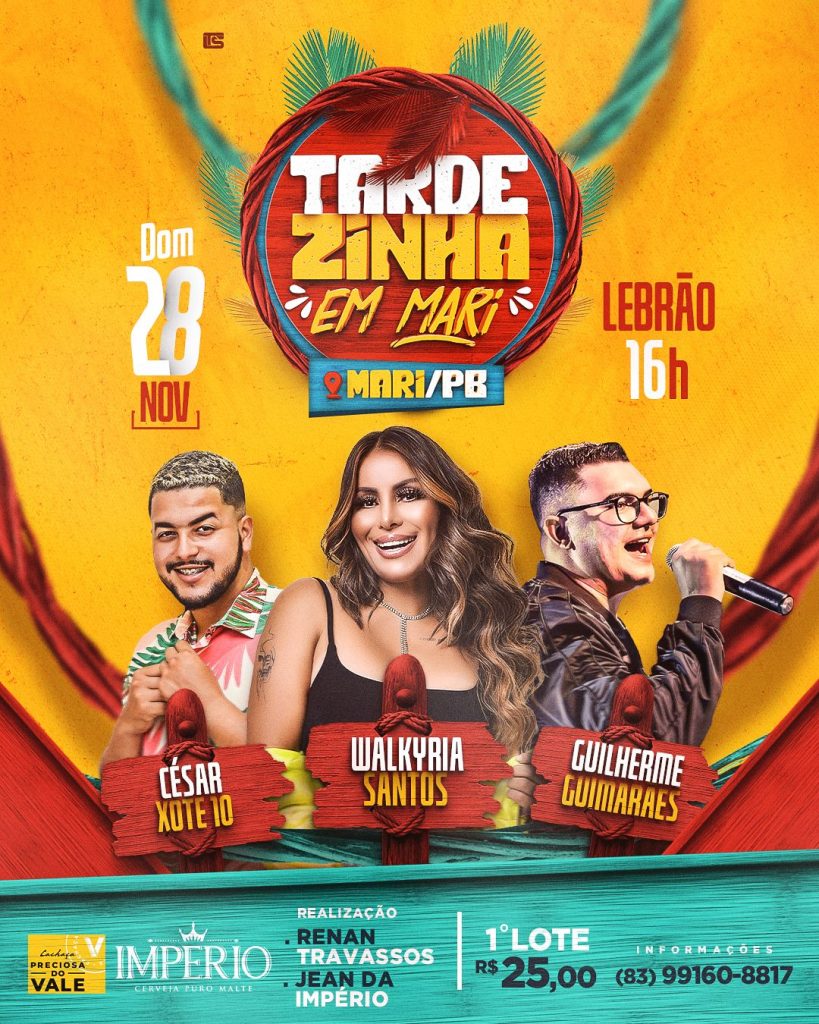 Nelma Morais Produções anuncia novo evento com Walkíria Santos, Cesar Xote 10 e Guilherme Guimarães em Mari/PB