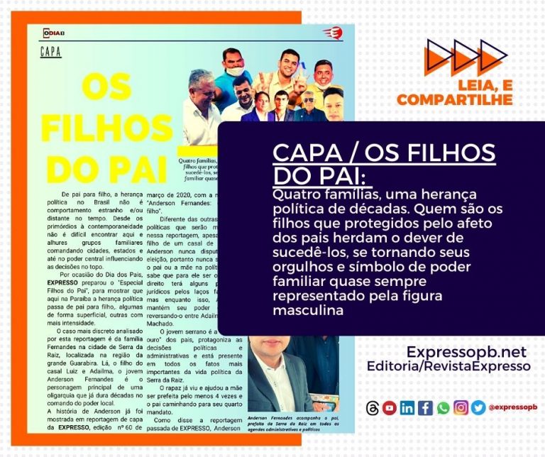 CAPA/ Os filhos do Pai: Quatro famílias, uma herança política de décadas. Quem são os filhos que protegidos pelo afeto dos pais herdam o dever de sucedê-los… agosto 13, 2023 Leia Mais...