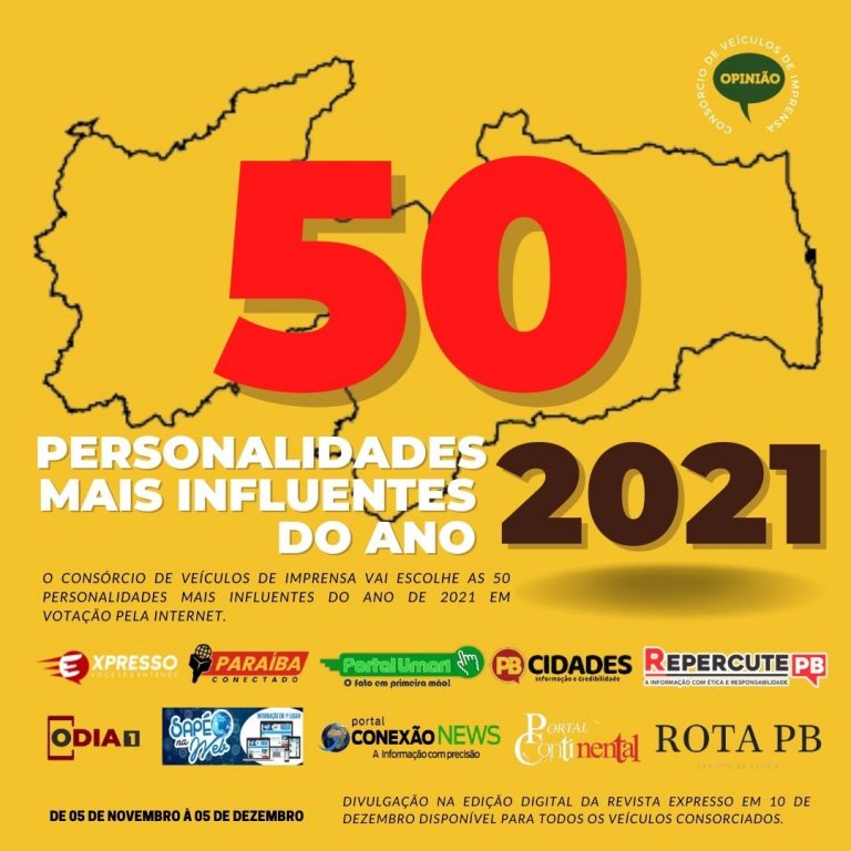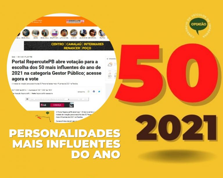 Personalidades mais Influentes de 2021: Internautas de mais de 20 cidades da PB já votaram para escolher na categoria GESTOR PÚBLICO novembro 8, 2021 Leia Mais...