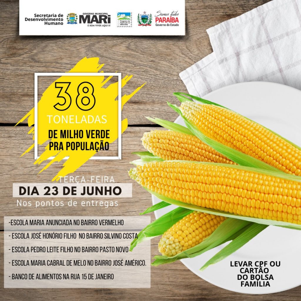 A Prefeitura de Mari, Zona da Mata da PB, em parceria com o Programa de Aquisição de Alimentação – PAA Estadual estará fazendo nesta terça-feira (23), véspera de São João, a entrega de cerca de 38 toneladas de milho. O município distribuirá 12 toneladas de milho pelo PAA e a prefeitura adquiriu com recursos próprios […]
