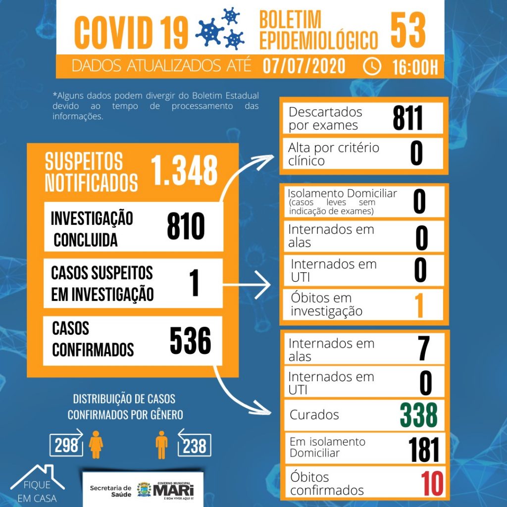 Boletim: Em 24h, Mari registra 33 novos casos do novo Coronavírus