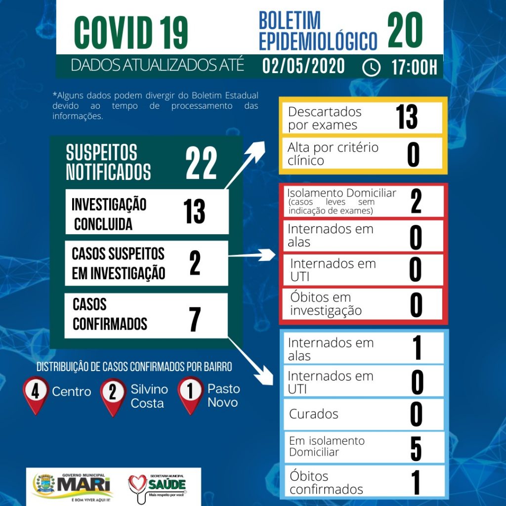 Em Mari, aumenta para 7 os casos confirmados de coronavírus e secretária de saúde volta a alertar a população
